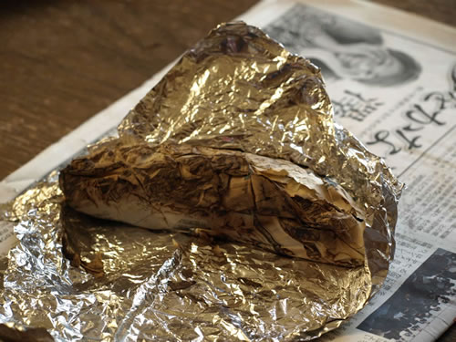 1時間、薪を片付けて戻ったところで、取り出してアルミ箔をはがしてみると「焼き芋」の良い香りがしてきました。