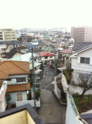 到着した時の戸塚はアパートから見るとミニチュアのよう(一眼トイ)