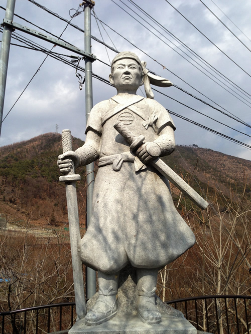 最初の大黒屋・サンガムさんへ向かう途中、旧勝沼町と大和村の境に立つこの銅像、誰だか知ってますか?