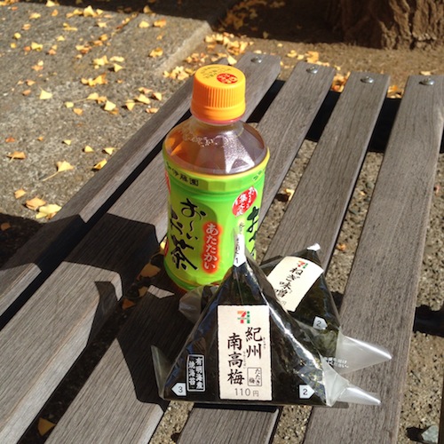 道路を渡りセブンイレブンでおにぎり購入し、美術館の駐車場にあるベンチでお昼を食べました。この時期は日が出ていると寒くもなく暑くもなく外が気持ちよいですね。