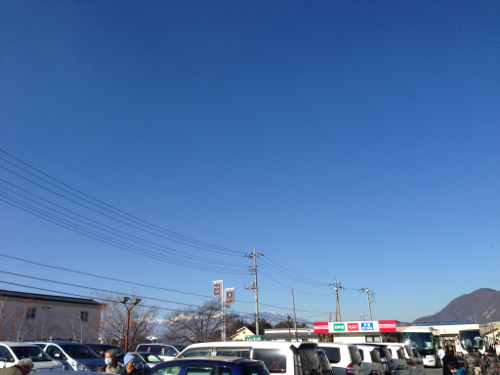 売店に面した駐車場は9時半なのに既に県外車で満車、誘導された建物の裏にある駐車に車を停めて売り場へ移動